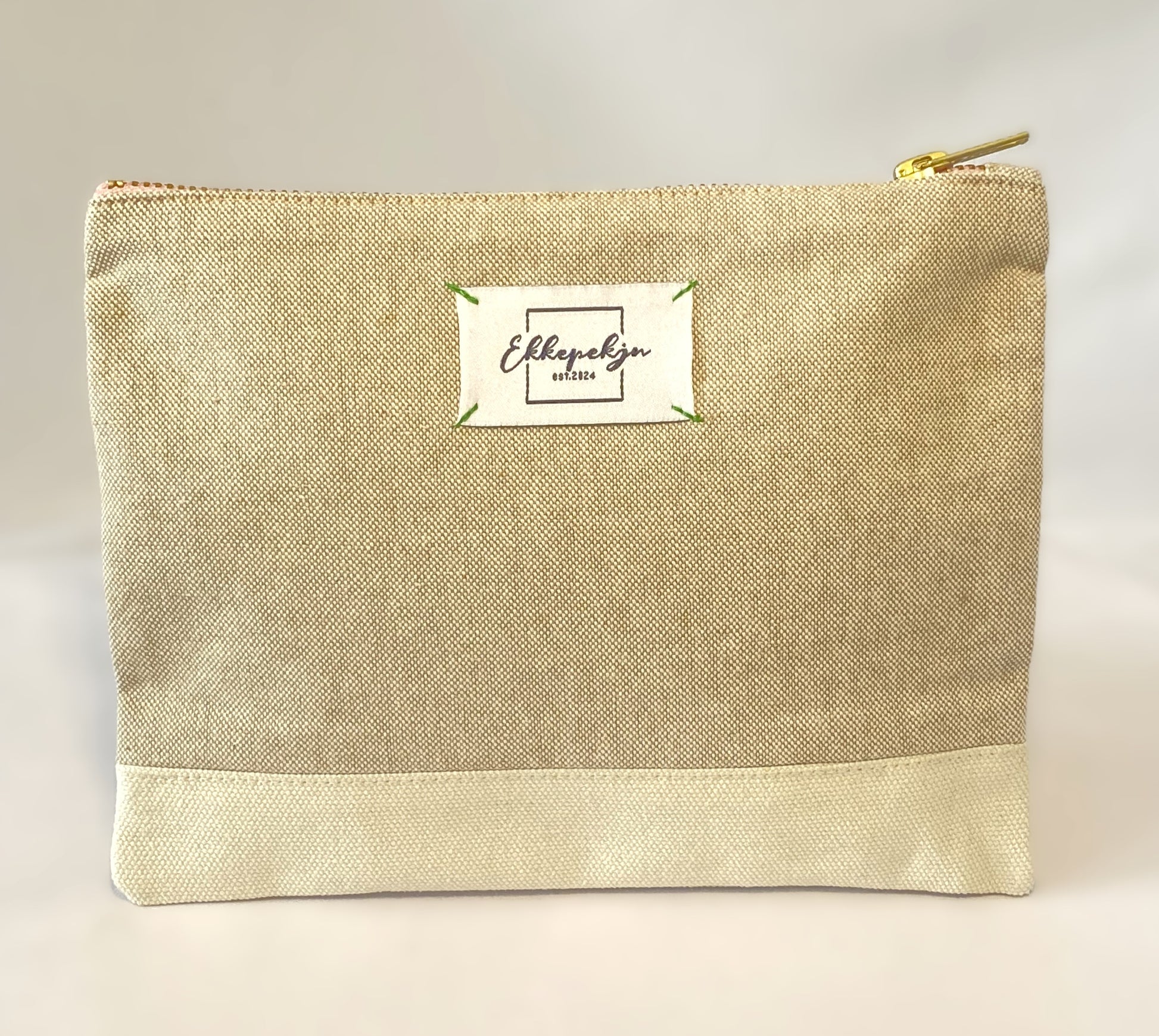 Fester Canvas in Creme kombiniert mit weichem Webstoff in Safari Beige aus 100 % Baumwolle.